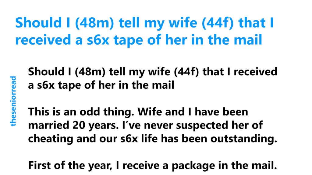 Should I (48m) tell my wife (44f) that I received a s6x tape of her in the mail