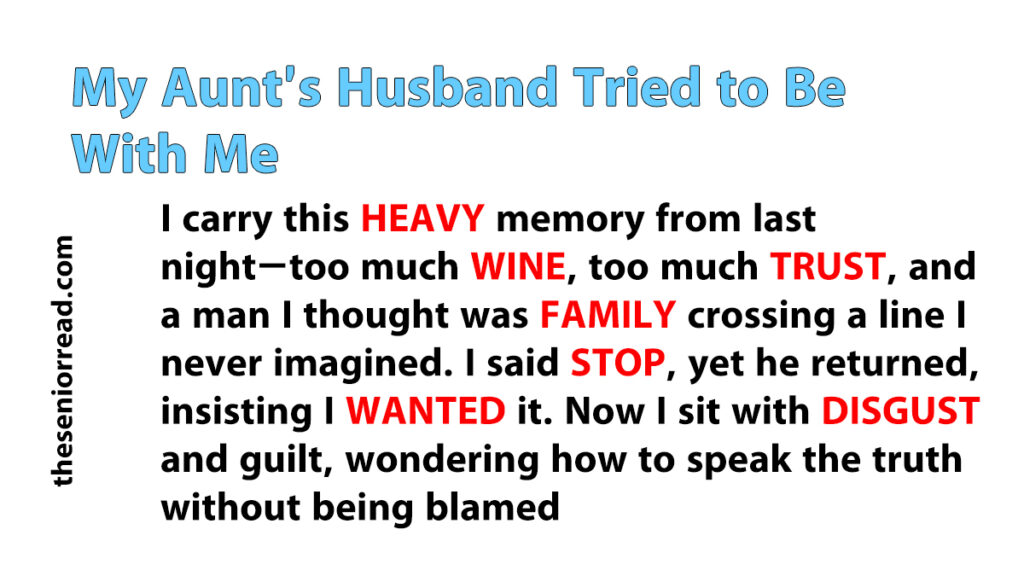 I need to release this from my heart because it happened just last night. I am 23, and I was with my aunt and her husband—he is in his mid-fifties, and they have been married for more than a decade—at a food and wine festival. I have known him throughout those years, and nothing like this has ever occurred before.