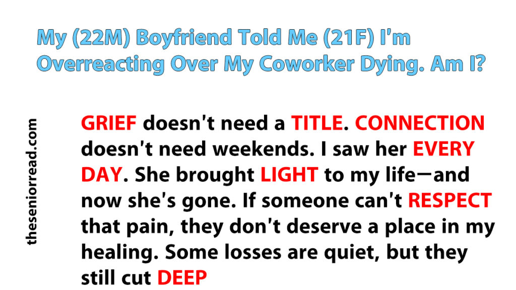 He asked if we’d ever spent time together outside of work, as if that was the only measure of a real connection. I told him, “You don’t need to hang out outside of work to form a bond. I saw her every day. You don’t get to minimize my grief just because you don’t understand it.”