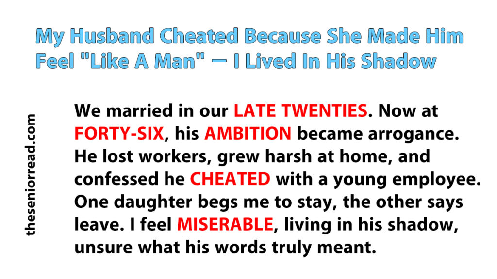 Then came the hardest truth. He confessed he cheated with a young employee, someone hired only months ago for basic phone work. He said she made him feel he deserved what she offered, that he had worked hard for years. I admit our intimacy had faded—I wasn’t in the mood, and I disliked what he had become. He told me she never refused him, always respected his authority, unlike me.