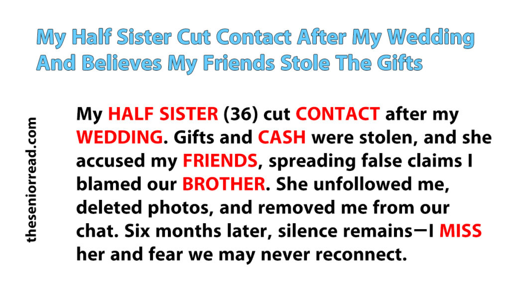 It didn’t seem to be about my marriage. She always supported my relationship and believed we were truly in love. The trouble began after my wedding night when our gifts and a large envelope of cash were stolen. I asked my family about it, but responses were vague. When I pressed my sister, she shocked me by accusing my friends of being thieves.