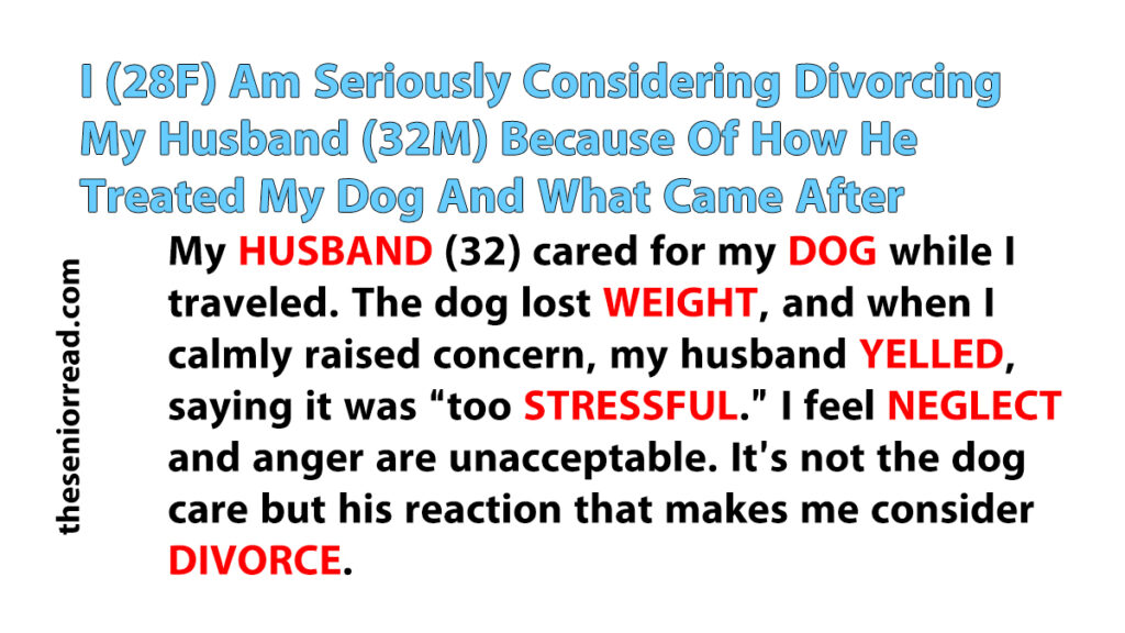 I wasn’t angry about the dog losing weight as much as about his reaction. I wanted him to learn to ask questions if unsure, not lash out. His yelling made me consider divorce more than the dog care itself.