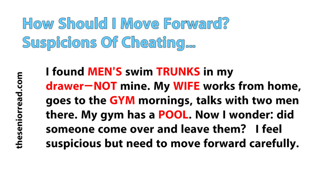Here’s where my mind starts connecting dots. My gym does have a pool. Last week, my wife mentioned some of the people she talks to there—an older gentleman and another guy, younger, muscular, usually in cargo shorts. She asked if I knew them. I pretended not to, but I do. I’ve sat in the sauna with one of them before, and I know he swims.