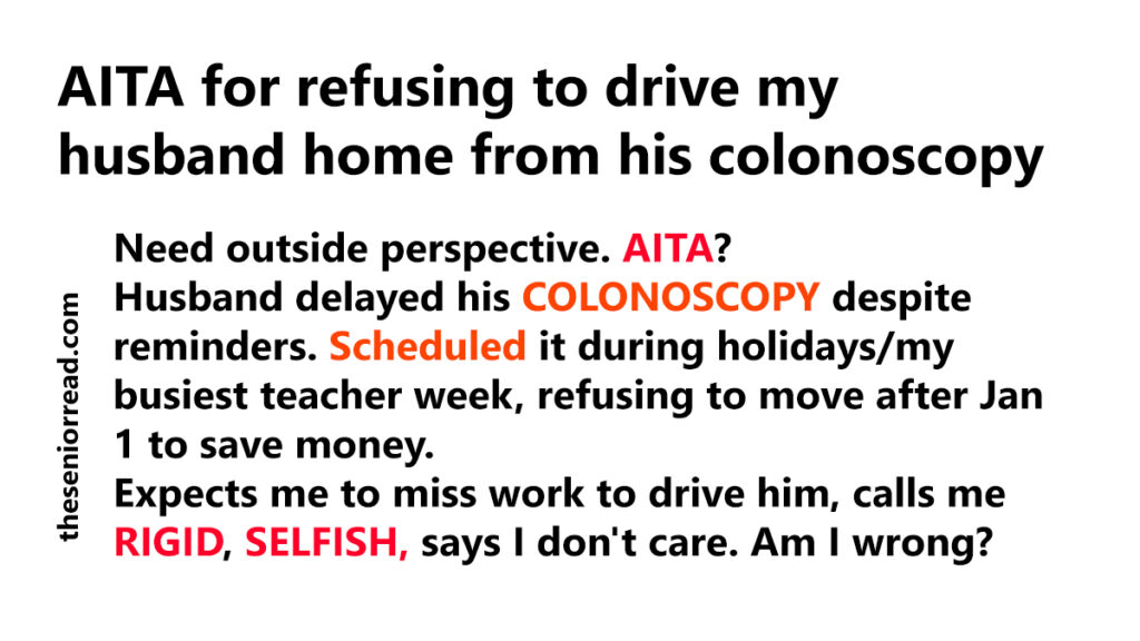 AITA for refusing to drive my husband home from his colonoscopy
