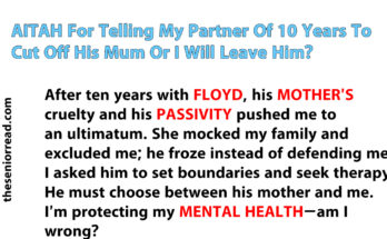 AITAH For Telling My Partner Of 10 Years To Cut Off His Mum Or I Will Leave Him? Read More