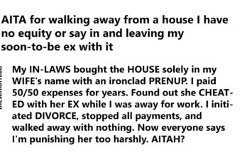 AITA for walking away from a house I have no equity or say in and leaving my soon-to-be ex with it Read More
