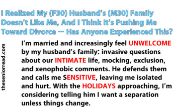 I Realized My (F30) Husband’s (M30) Family Doesn’t Like Me, And I Think It’s Pushing Me Toward Divorce — Has Anyone Experienced This? Read More